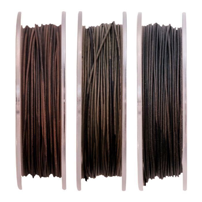 Le revêtement en tungstène camo mat et résistant s'enfonce fortement et s'effile facilement tout en étant résistant à la rupture sur les nœuds. Se redresse sans vapeur. Le noyau en Dyneema super résistant permet d'atteindre une résistance aux nœuds de plus de 30 lb. 20 lb+ Soft Cette version souple est parfaite pour les présentations subtiles avec des appâts à hameçons tels que les petites bouillettes et les noix. Les appâts équilibrés ou flottants, combinés à la souplesse inhérente de la tresse, aideront le montage à se stabiliser parfaitement tout en éloignant l'appât du plomb. 20lb+ Semi-Stiff La version semi-rigide est exceptionnelle comme bas de ligne enrobé. Associée à des hameçons et des bouillettes de plus grande taille, elle reste suffisamment rigide pour éloigner l'appât du plomb et optimiser l'efficacité du montage. Elle constitue également une excellente perche pour les montages à charnière. Tous les modèles sont disponibles dans les coloris camo Weedy Green, Camo Brown et Choddy Silt. Fourni sur une bobine design de 10 m pour réduire les déchets et s'adapter aux boîtes à pêche les plus populaires. Essayé, testé et perfectionné en collaboration avec Terry Hearn.