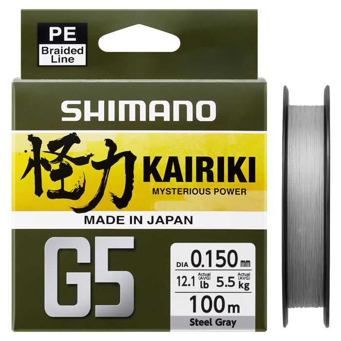 La nouvelle KAIRIKI G5 est une nouvelle ligne Shimano tressée avec des caractéristiques uniques. Cette ligne tressée à 4 laines utilise une laine centrale fabriquée à partir d’une matière à gravité plus élevée. Le résultat est une ligne tressée à coulée rapide qui offre plusieurs avantages aux pêcheurs. Cette ligne est plus lourde et donc moins affectée par le vent lors du lancer, et le courant lors de la tombée initiale sur l’eau. À cause de cela, le pêcheur a un contrôle plus rapide sur le leurre. Lors de la phase de coulée la ligne coule plus rapidement qu’une ligne tressée régulière, ceci la rend plus facile à pêcher, surtout avec des montages plus légers en profondeur. D’autres lignes avec une gravité élevée sont nylon et fluoro mais comparée à celles-ci la nouvelle KAIRIKI G5 n’a aucune élasticité et une résistance beaucoup plus élevée. Cette nouvelle KAIRIKI G5 est développée pour le vrai fan de matériel qui aime affiner son matériel à la limite pour atteindre les meilleurs résultats possibles.