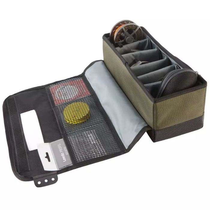 Ce sac à moulinet est capable de stocker en toute sécurité jusqu'à six moulinets ou bobines cassettes. Il évite les dommages dus aux intempéries tout en facilitant le transport de vos précieux moulinets d'un endroit à l'autre. Le système de fixation par velcro permet de garder les objets de pêche précieux en sécurité dans toutes les conditions et l’attache solide permet de sécuriser les outils supplémentaires.