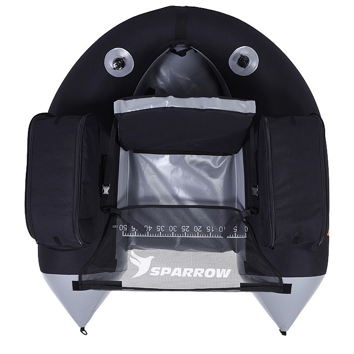 Léger et maniable, le tube de flottaison Sparrow CARGO permet des déplacements rapides et discrets. La partie immergée est en toile PVC, la partie supérieure est en polyester 600 deniers. Le siège autoportant en mousse haute densité assure confort et sécurité. Les deux flotteurs sont d'un diamètre plus important que ceux des autres tubes de flottaison, ce qui positionne le siège plus haut. Le tube de flottaison Sparrow CARGO est équipé de deux grandes poches latérales amovibles pour le rangement des boîtes et d'un tapis de réception gradué. Une ligne de vie permet de sécuriser les poches et les accessoires. Les coutures les plus exposées aux frottements sont protégées par une bande de sécurité. 4 anneaux vous permettent de positionner un porte-canne Sparrow.