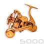 Découvrez le moulinet Vagner Bagrus 5000 Silure Catfish Reel en aluminium aéronautique 6061-T6 CNC. Doté d'un frein double agissant de haut en bas pour une puissance accrue. Les engrenages en laiton (brass) CNC garantissent des performances optimales. Profitez de la fluidité avec 12+1 roulements à billes. Choisissez entre deux ratios : 5.0:1 ou 4.7:1 selon vos préférences. Le frein maximal peut atteindre 22 kg ou 30 kg, en fonction du modèle. Malgré sa robustesse, le moulinet reste léger avec un poids de 450 g ou 720 g, pour une expérience de pêche confortable et efficace.