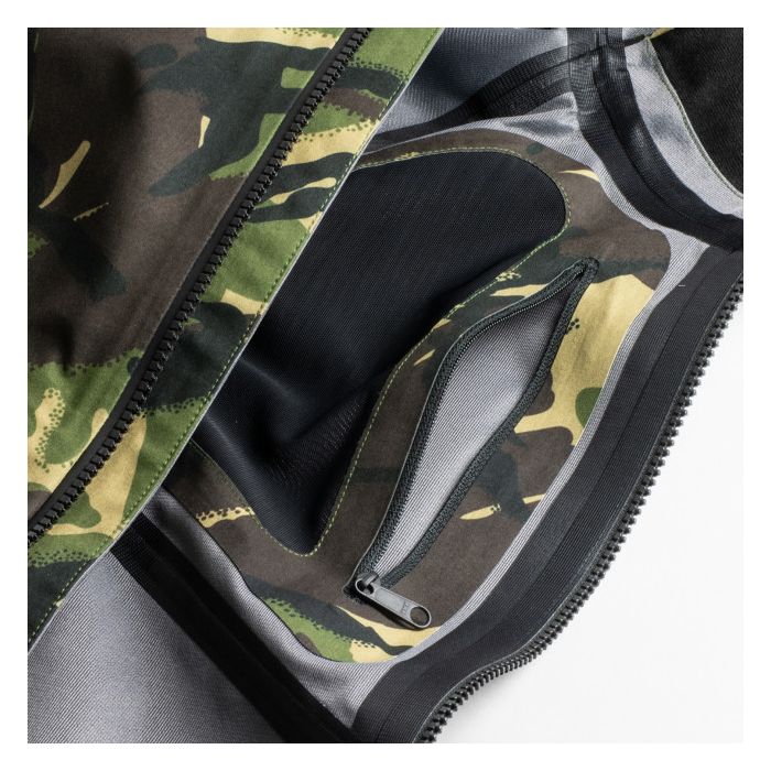 La couche externe étanche ultime. Construite pour l’extérieur, la Veste Fortis Marine fournit une protection essentielle contre les éléments. Minutieusement conçue et développée pour le pêcheur dévoué, cette veste totalement étanche, ultra respirable, et à design ergonomique est la couche externe de protection pour notre système de couches techniques et l’accompagnement parfait à notre Overtrouser Marine. Une attention particulière a été portée à la coupe de la veste avec ses manches articulées qui sont une caractéristique ergonomique qui permet à vos bras de rester protégés pendant que vous les flexez pour un lancer. Notre tissu Triflex est doté d’étirement supplémentaire, et combiné avec la couture technique autour des épaules, cela assure que la veste ne se lève pas au dos lorsque vous levez les bras. Une coupe classique et relaxée signifie que vous pouvez ajouter des couches en fonction des saisons sans restriction. La capuche résistante à la tempête avec un pic raidi fournit une stabilité et le bord en fil est facilement réglable pour s’adapter aux conditions. Cela offre une protection extreme au visage pour que vous puissiez garder vos yeux sur l’eau à tout moment. Notre tissue Triflex est très respirable et repousse l’humidité générée par beaucoup d’activité. Alors, si vous marchez des kilomètres à la recherche de poissons dans des conditions difficiles, il est facile d’oublier que vous portez une veste étanche avant que les pluies n’arrivent.