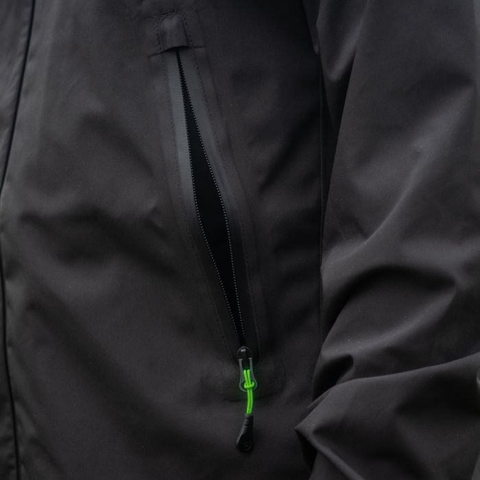 Notre toute nouvelle gamme de vestes imperméables DRYKORE sont respirables, ont une coque externe légère fabriquée à partir de tissu 15k leader de l’industrie et sont si légères que vous les remarquerez à peine. IMPERMÉABLE - La veste DRYKORE vous garde totalement sec et n’entravera pas votre activité, que ce soit lancer, jouer avec des poissons, ou même grimper dans un arbre. La membrane hydrophile 15k, qui est soudée et scellée sur les coutures, assure qu’elle soit totalement étanche, même si vous vous retrouvez dans une pluie torrentielle ou une tempête de neige. COUPE-VENT - Bien qu’étant conçue pour être portée par-dessus des vêtements par temps froid, elle joue aussi un grand rôle pour vous garder chaud car elle est impénétrable pour le vent, même le fort des courants ne peut pas passer à travers. COUPE STRETCH - En plus d’être résistante au vent et à l’eau, la matière tissée high-tech que nous avons utilisé fournit une coupe stretch exceptionnelle, ce qui signifie que, bien que la veste ait été conçue pour empêcher le vent ou la pluie d’entrer, elle vous permet aussi une totale liberté de mouvement lors de la pêche. La Veste DRYKORE a subi des tests exhaustifs pour la perfectionner, vous avez peut-être même aperçu Danny et l’équipe porter les versions d’essais dans nos vidéos durant ces deux dernières années. C’est un design sur mesure original qui a été surveillé par Danny à travers le procédé et a un grand nombre de caractéristiques de design inspirées par la pêche. Le cou est assez élevé pour empêcher tout courant d’entrer, avec un rabat au toucher doux pour empêcher la fermeture éclair de frotter votre menton ou visage. La capuche intégrale est réglable via une attache à l’arrière, pour lui permettre de loger parfaitement par-dessus des casquettes, et aussi pour fournir une coupe assez serrée que le vent ne l’enlèvera pas de votre tête. De plus, elle est dotée d’une visière rigide qui non seulement l’aide à garder sa forme, mais encourage aussi l’eau à couleur sur les côtés, plutôt que dans votre visage. Elle est taillée autour de la taille pour qu’elle soit plus longue à l’arrière, ce qui signifie qu’elle vous gardera toujours au sec lorsque vous vous asseyez. Les poignets sont aussi conçus pour empêcher l’eau d’entrer, comme lorsque vous levez les bras pour lancer, il n’y a rien de pire que l’eau qui coule dans votre manche ! Ceci est atteint par des attaches Velcro qui assurent une coupe serrée autour de vos poignets, mais qui peut toujours être réglée facilement pour le confort, en fonction de ce que vous faites. Les fermetures éclair sont toutes de haute qualité et ont été conçues pour empêcher l’eau d’entrer soit par la fermeture éclair principale, ou par les deux grandes poches externes, qui peuvent être utilisées pour le rangement ou pour protéger vos mains des intempéries. Il y a aussi deux poches internes pour des objets de valeur, dont une est plus petite et parfaite pour les clés de voiture, et l’autre peut facilement accueillir votre smartphone.
