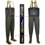 Cette combinaison offre aux pêcheurs le meilleur des deux mondes sans compromis. La série Vass-Tex 700, la plus vendue de Vass, et le wader léger 350. Vous obtenez une combinaison de la partie inférieure en PVC lisse de haute qualité 700, plus résistante et plus durable, avec la partie supérieure légère du 350. Ce mélange des deux a créé un wader qui conserve la liberté de mouvement du haut du corps, tout en ayant la durabilité accrue du bas, là où ça compte ! Fabriqué avec des coutures quadruples soudées fiables et doté des bottes Vass E super résistantes et adhérentes. Il y a une poche extérieure étanche zippée et une poche intérieure non zippée pour transporter quelques objets essentiels.