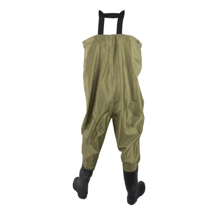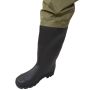 Les cuissardes sont livrées avec des bottes robustes en PVC noir pour que vos pieds restent au sec et au chaud une fois dans l'eau, car il n'y a rien de pire que de rester assis sur sa chaise de pêche le reste de la journée avec des chaussettes trempées !